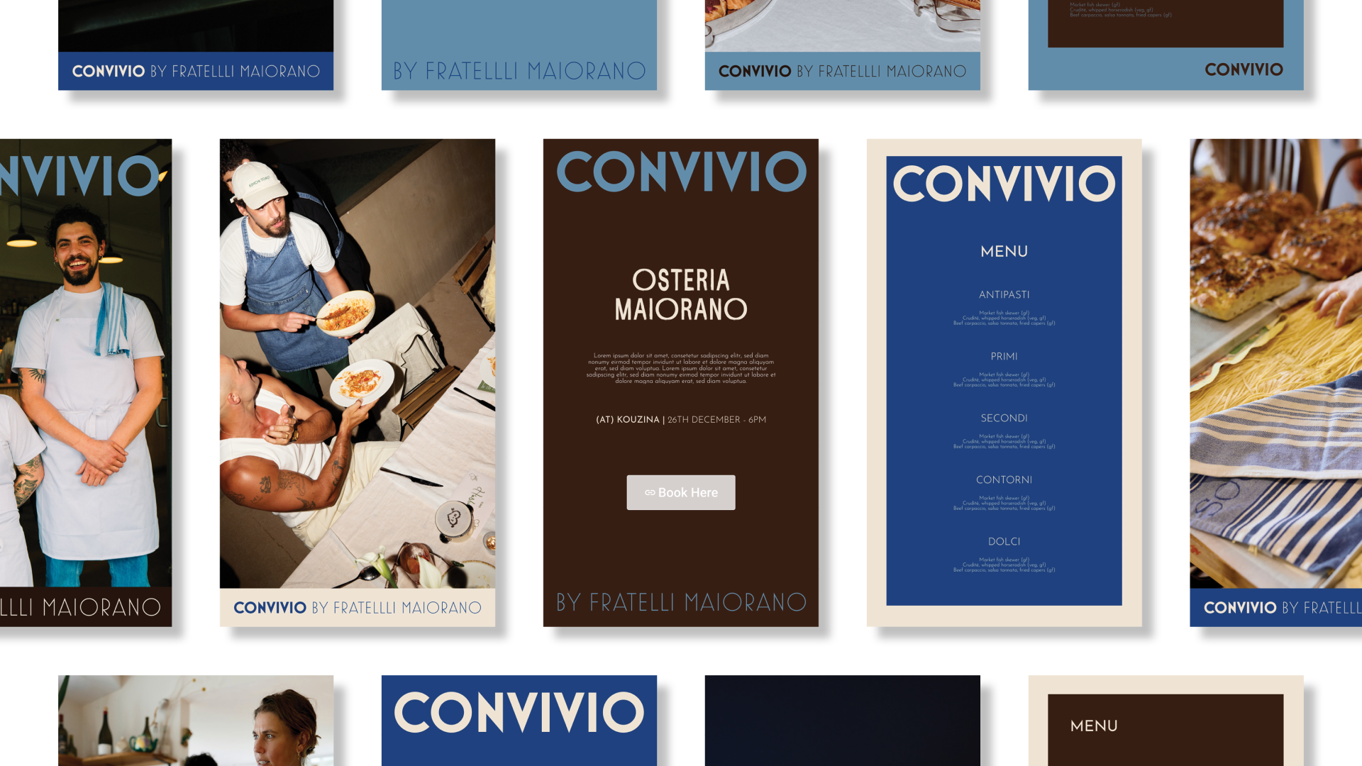 Convivio takes its name from the Italian word for a banquet defined by joy and familiarity. Working closely with the team, the focus was on strengthening the brand system and improving clarity across digital platforms while retaining the warmth and personality of the business.The scope included refinement of the brand identity, website design and development, an EDM newsletter template and social media templates. The redesigned website structure improved navigation and usability, allowing imagery and content to take focus while ensuring consistency across every customer touchpoint.